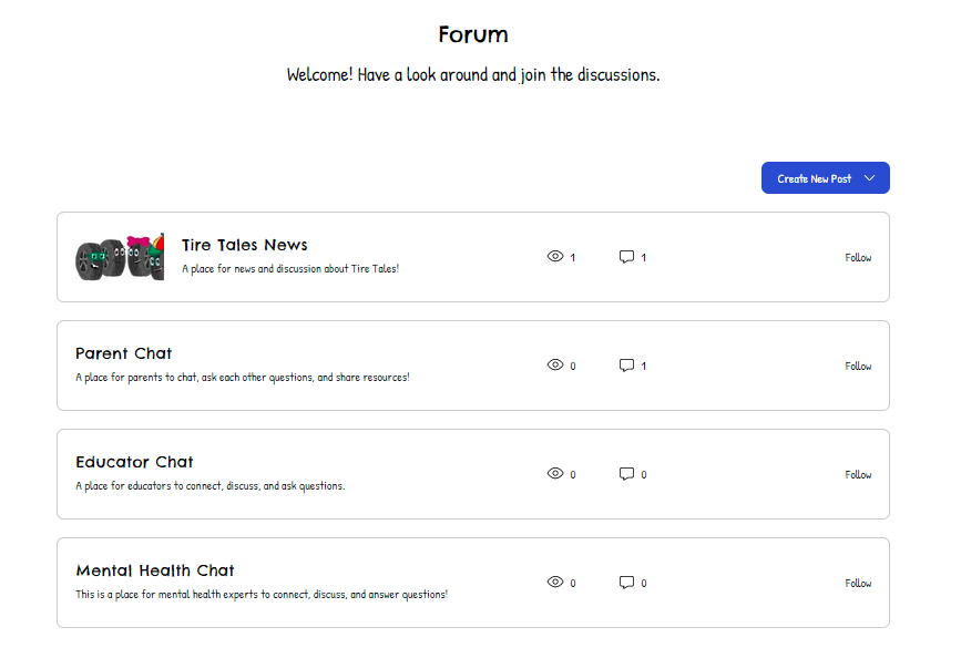 My hope is that the Tire Tales Community will work together to help one another and connect! In this spirit, I have also created roles to show those members who are Homeschooling Parents, Parents, Educators, and Mental Health Experts! This will allow members to easily seek out or see advice from other, more qualified, members in certain topics! For right now, please message me via the CONTACT page to let me know if you fulfill one of these roles!