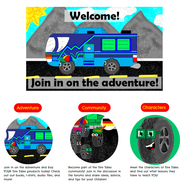 On the Community tab you will find links to the Forum, Members, and Gallery pages! The Community tab is there to do just that! Create a community! You can sign yourself and your child up for the Tire Tales community via the Members page OR the log-in bar located at the top.