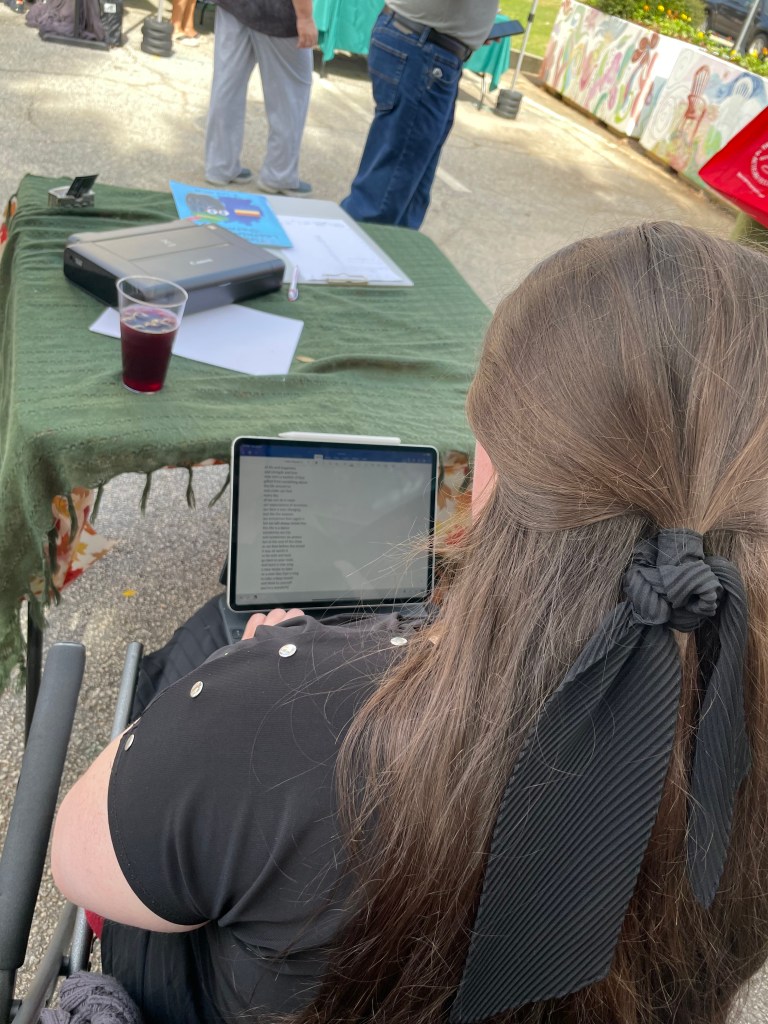 Overall, I am so grateful to have had the opportunity and the experience to be a vendor at the Braselton Antique and Arts festival! I remembered why I call myself a writer and the joy I have in creating unique and special poems and experiences for others!