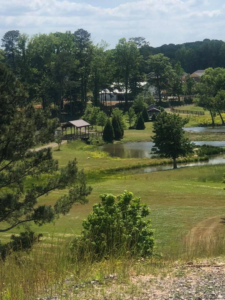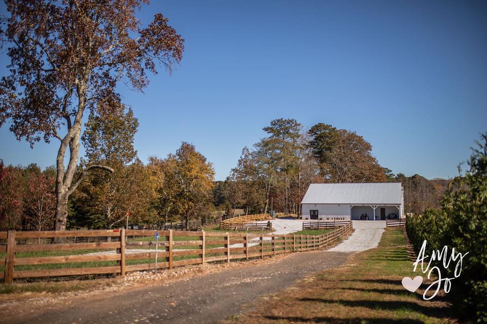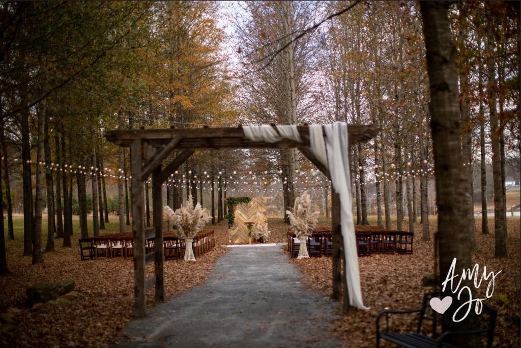 Their site is beautiful! It’s just 10 minutes from downtown Cumming, Ga but you wouldn’t know that as soon as you drive under their gate onto their property! A gravel road takes you directly to the barn where, inside, you’ll find reclaimed wood, a gorgeous drapery that covers the entire ceiling, and two large doors that open to a patio outside! Even in the rain that visited this past Sunday, it was absolutely stunning!