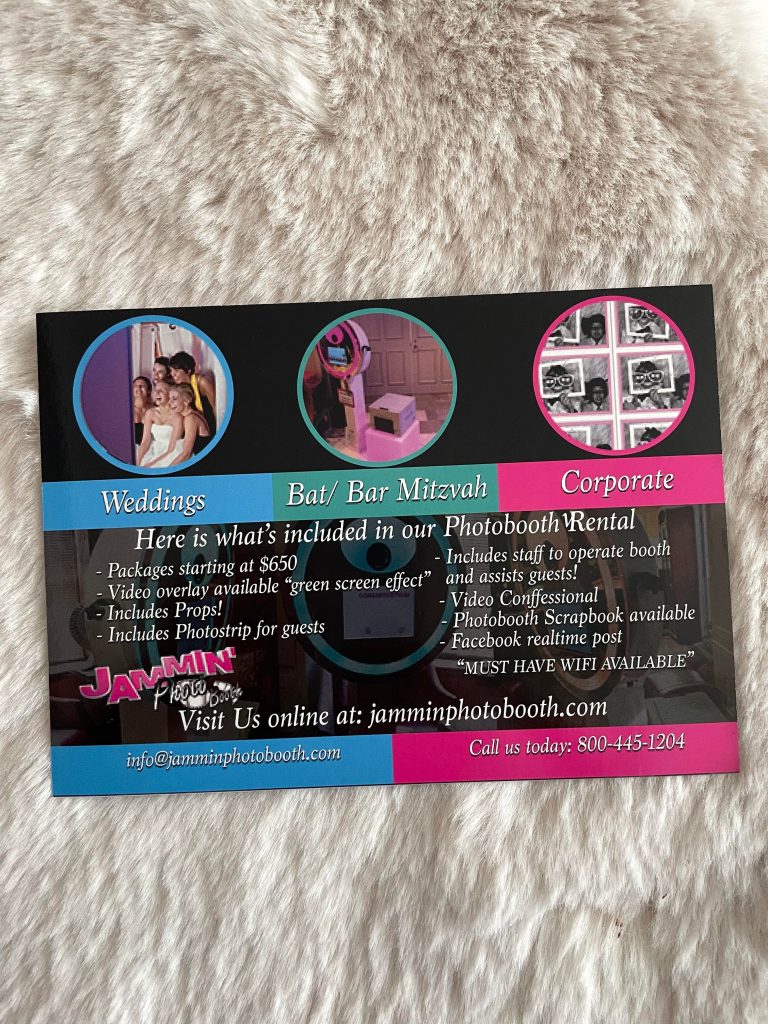 For a more modern photobooth complete with props, green screen, and a staff to make sure your photobooth experience is user error free, check out Jammin’ Photo Booth!
