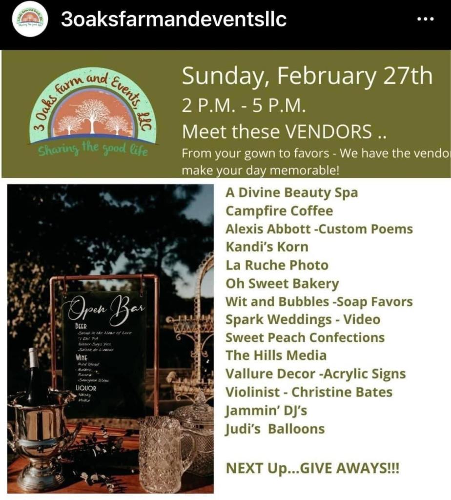 This past Sunday (27 February 2022) 3 Oaks Farm hosted an open house! The main event took place inside a beautifully rustic barn front and center on the property! The event organizers and owners invited all sorts of wonderful vendors to show off their stuff and meet the event attendees!